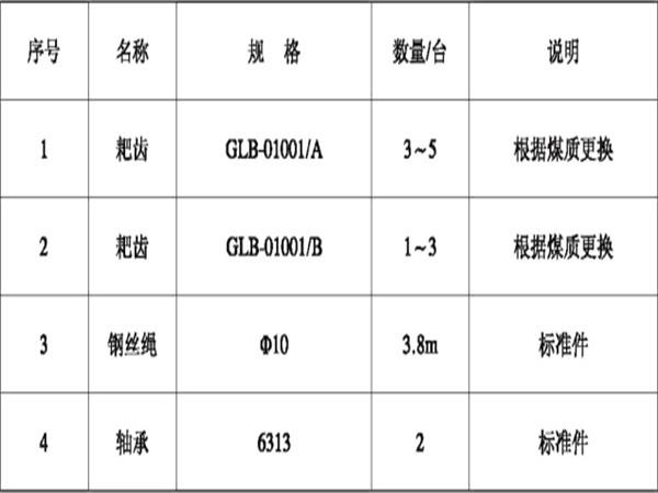 GLB4800-15型耙式(變傾角)給料機易損件明細表: