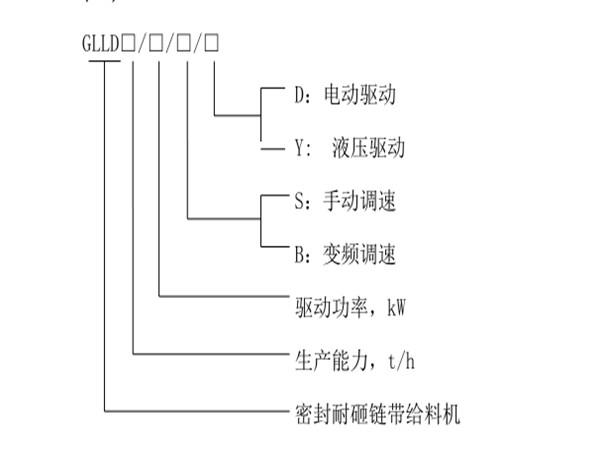 密封式耐砸鏈帶給料機(jī)型號(hào)說明: