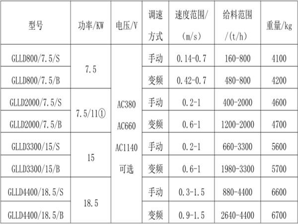 密封式耐砸鏈帶給料機(jī)性能參數(shù):